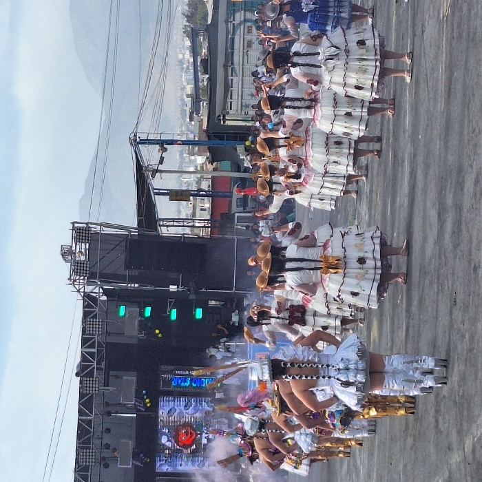 An outdoor cultural performance is captured during daylight hours in José Luis Bustamante y Rivero, Peru