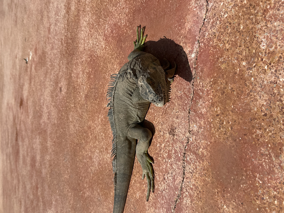 - "An adult iguana is observed lying prone on a reddish-brown, speckled paved surface in Drarga, Morocco" by FM-uegzv2, licensed under CC BY 4.0