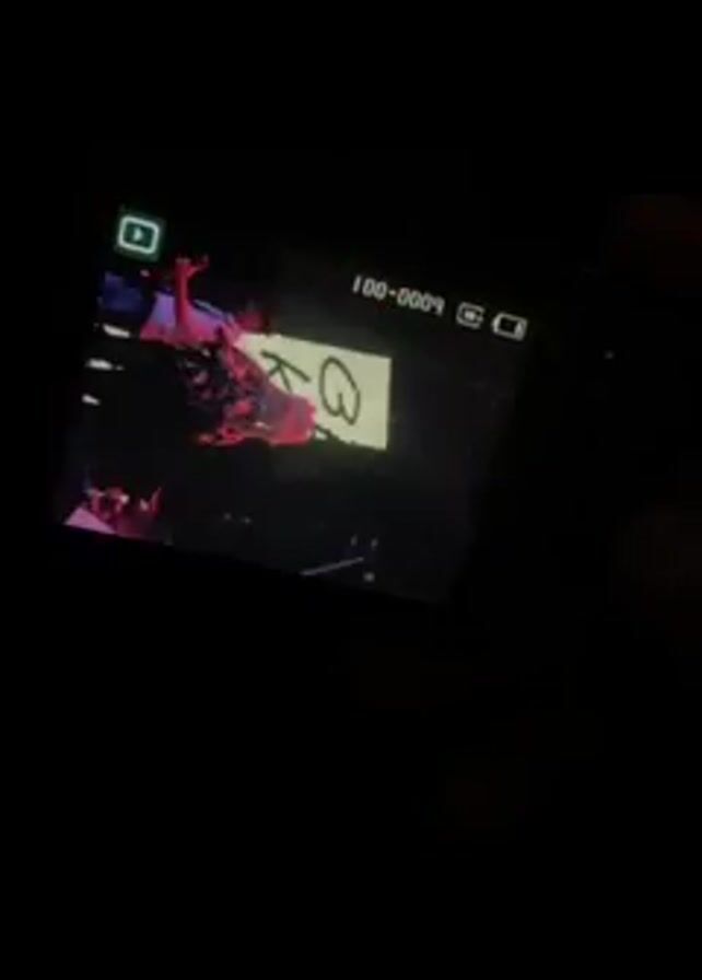 series of images displayed on a small screen, likely a camera or handheld device. The images are poorly lit and appear to have been taken in various locations. They depict scenes including people at a concert, a man and a woman together, a crowd of people, and a room with a motorcycle. The overall quality is grainy and dark, making it difficult to discern details clearly.