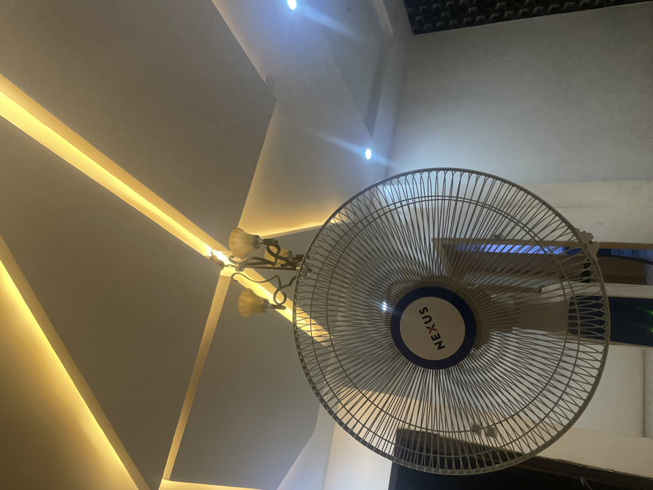 - "The image depicts a ceiling fan with a white metal frame and a blue circular center labeled "NEXUS"" by FM-3D6qt1, licensed under CC BY 4.0