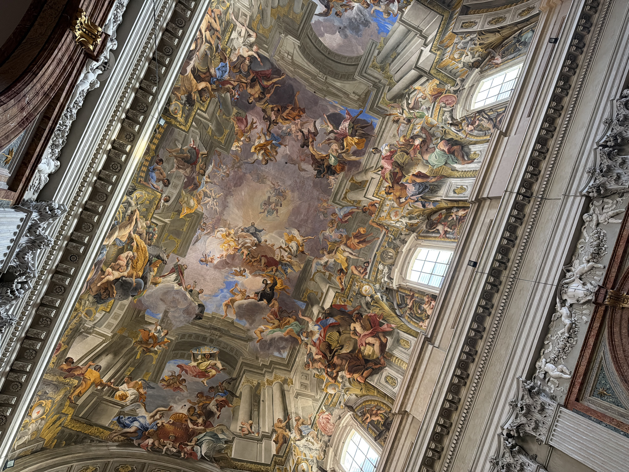 The image depicts the ceiling of the Church of Sant'Ignazio di Loyola in Campo Marzio, Rome, Italy