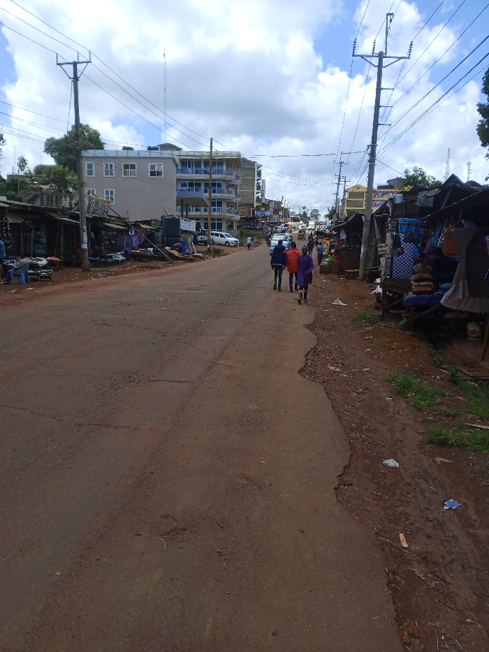 - "The image displays a daytime street scene in Kangema, Kenya, looking down a reddish-brown, unpaved or heavily worn asphalt road that exhibits cracks and surface irregularities" by FM-WEceg1, licensed under CC BY 4.0