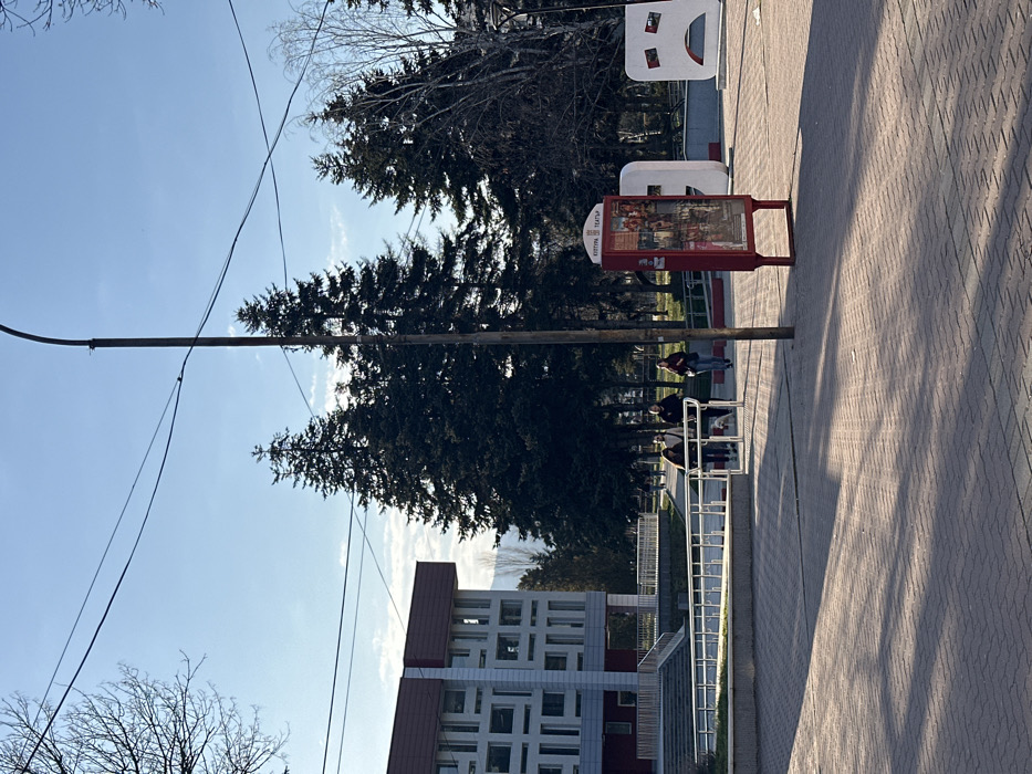 An outdoor urban scene in the city of Kyustendil, Bulgaria, specifically in the square fronting the Kyustendil Drama Theater