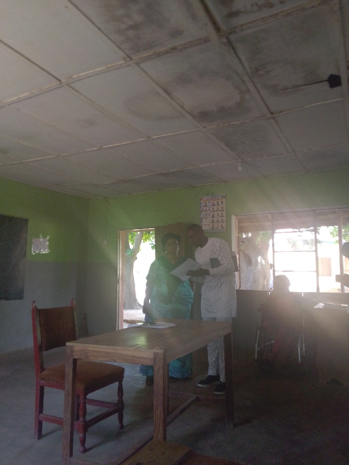 This image captures an indoor scene, likely a classroom or office, in Saminaka, Nigeria