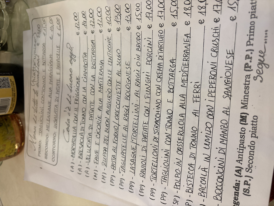- "The image displays a handwritten Italian menu on a white sheet of paper, resting on a light-colored table surface" by FM-E1hwL2, licensed under CC BY 4.0