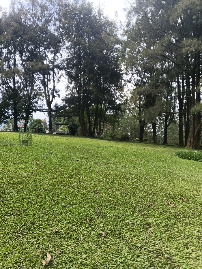 The image displays an outdoor scene in Kwekwe, Zimbabwe, featuring a gently sloping, well-maintained green lawn in the foreground and midground