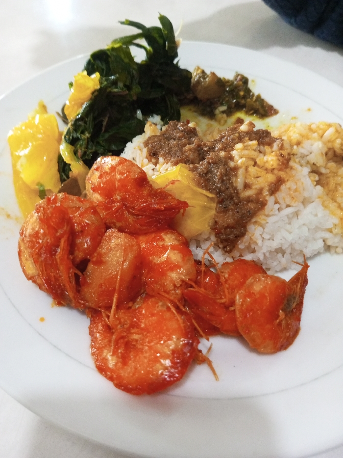 - "A white plate holds a meal featuring several fried shrimp with reddish-orange shells dominating the bottom left" by FM-8UBjS2, licensed under CC BY 4.0