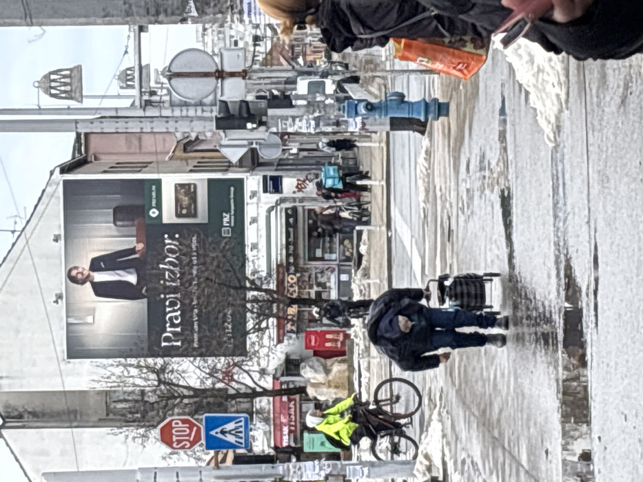 - "The image depicts a street scene in the city of Zagreb, Croatia, likely during winter or early spring, characterized by an overcast sky, wet asphalt, puddles, and patches of melting snow" by FM-Y1Zvi1, licensed under CC BY 4.0