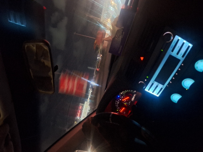 - "The image depicts the interior of a moving vehicle at night, positioned in Ikota, Nigeria, viewed from the driver's perspective looking forward" by FM-JQPEg2, licensed under CC BY 4.0