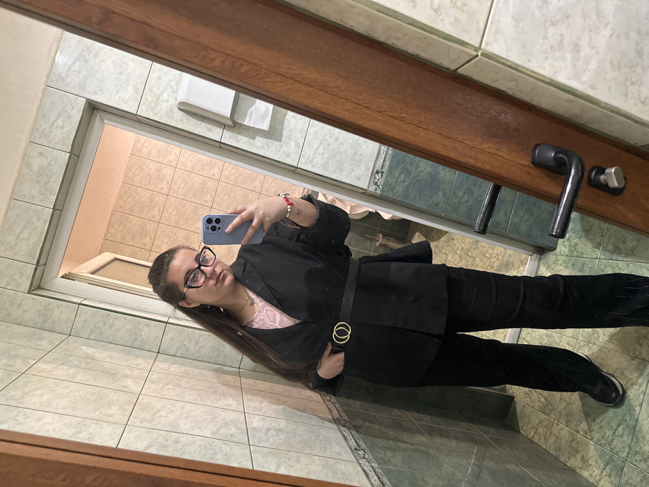 - "A female individual is depicted taking a mirror selfie in what appears to be a restroom or bathroom located in Primorsko, Bulgaria" by FM-ghh6b2, licensed under CC BY 4.0