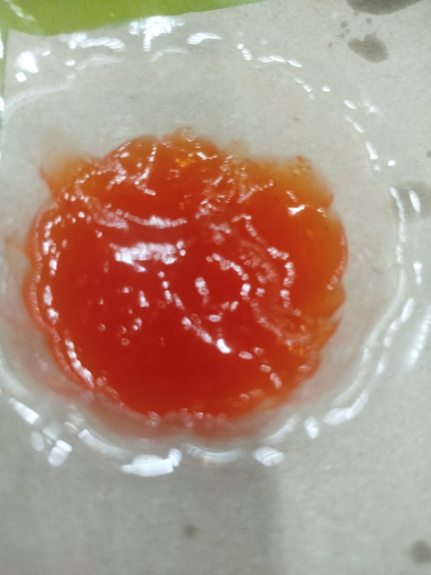 - "An overhead close-up captures a roughly circular mass of bright orange-red viscous substance, exhibiting a glossy surface with numerous small white reflections, consistent with a condiment or jam" by FM-t1qsx2, licensed under CC BY 4.0