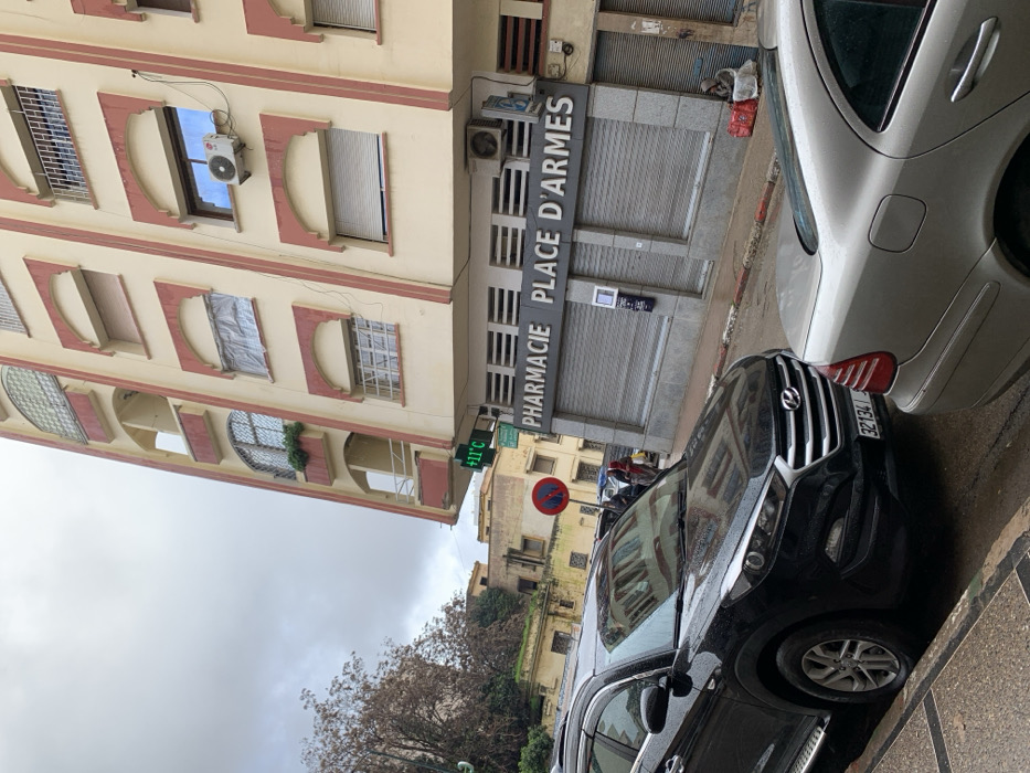 - "The image captures a street scene in Meknes, Morocco, specifically at Place d'Armes, identified by the prominent "PHARMACIE PLACE D'ARMES" sign on a commercial building" by FM-48sj32, licensed under CC BY 4.0