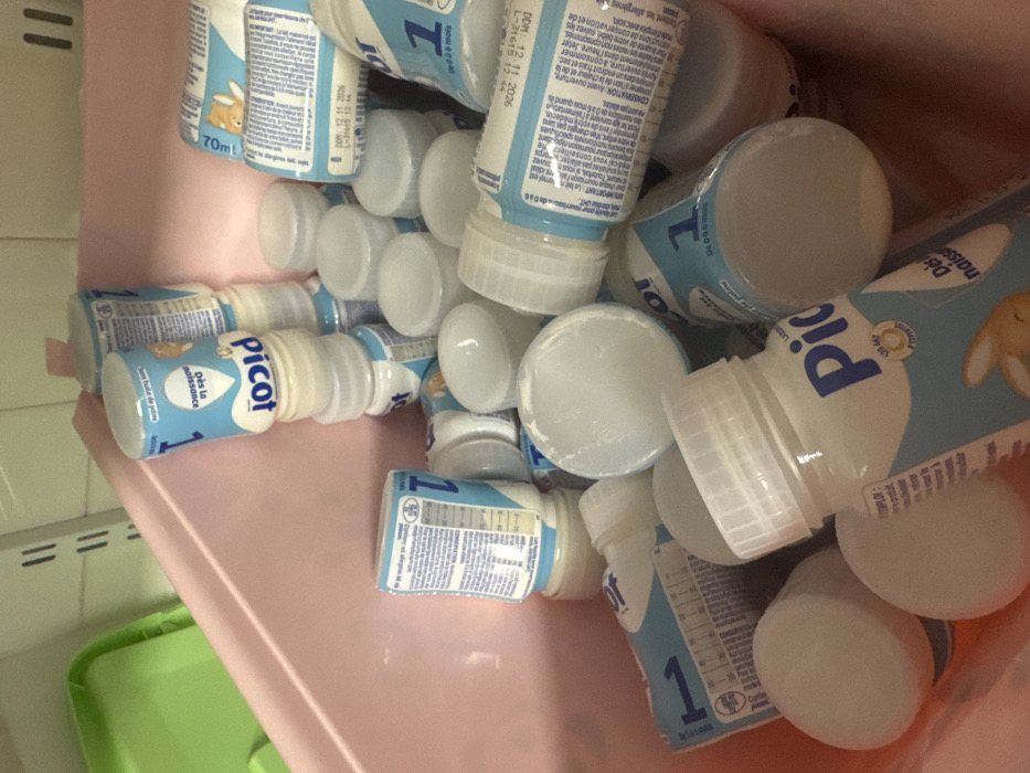 - "A bin or container is filled with small bottles of Picot infant formula" by FM-xTDQG2, licensed under CC BY 4.0