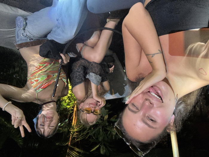 - "This nighttime image captures three young adult females seated outdoors in Munggu, Indonesia, in an area featuring lounge seating and tropical foliage, with rippling light patterns indicative of nearby water" by FM-gfWXg2, licensed under CC BY 4.0