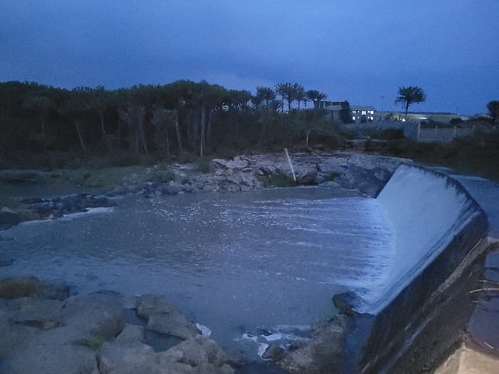 - "The image portrays a twilight or nighttime scene in Kinanie ward, Kenya, centered on a body of water flowing over a concrete weir" by FM-V2aJn2, licensed under CC BY 4.0