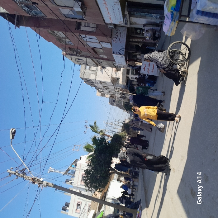 - "This image depicts a bustling street scene in Deir el-Balah, Palestinian Territory, under a clear, bright blue sky" by FM-V8KrL2, licensed under CC BY 4.0