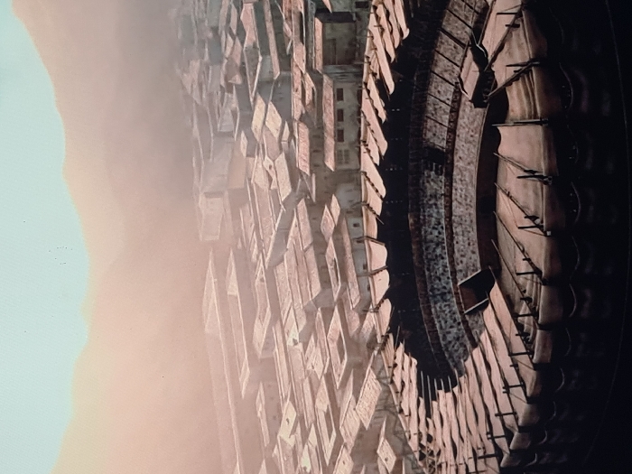 - "An aerial perspective reveals a densely packed cityscape adjacent to a colossal circular structure, possibly an amphitheater or arena" by FM-pSG9r2, licensed under CC BY 4.0