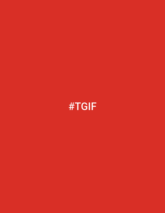 The image displays a uniform, solid red background. Centered on this background are the white characters "#TGIF" rendered in a sans-serif font. No individuals, physical objects, or environmental details are present within the graphic. This digital graphic is contextually located in the city of Maiburiji, Nigeria.