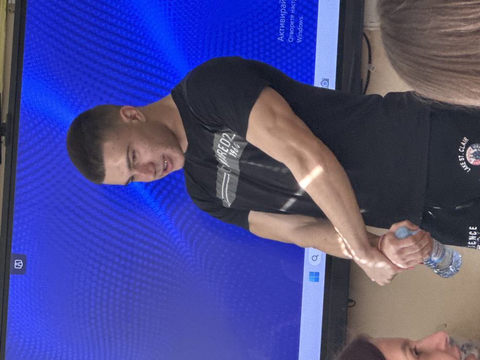 - "An indoor scene in Cherven Bryag, Bulgaria, depicts a young adult male with short dark hair and a muscular physique standing centrally" by FM-YdfdG3, licensed under CC BY 4.0
