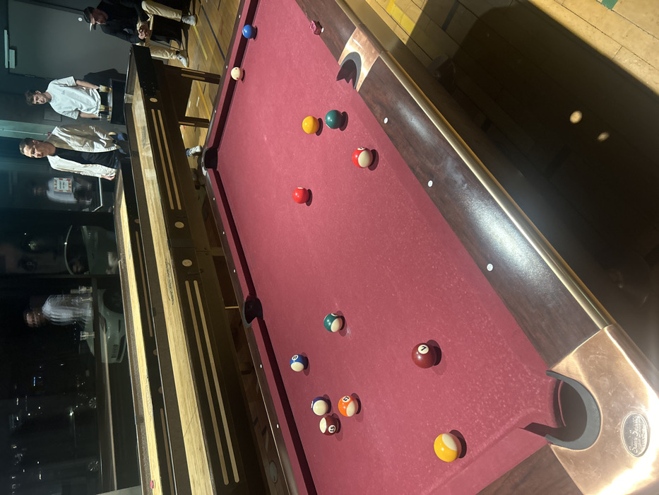 - "A bird's-eye perspective captures a billiard table with various colored balls scattered across its burgundy felt surface" by FM-JkXv43, licensed under CC BY 4.0