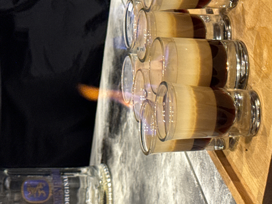 - "Several shot glasses filled with layered liquid are arranged on a wooden surface" by FM-YkpAz1, licensed under CC BY 4.0