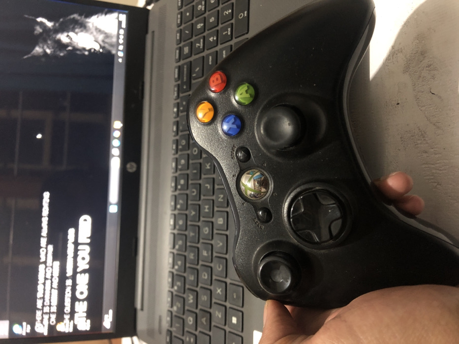 - "The scene, located in Ciherang, Indonesia, shows a close-up, elevated view of a human hand holding a black Xbox 360 gaming controller in the foreground" by FM-aA4dB2, licensed under CC BY 4.0