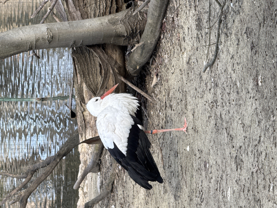 - "A White Stork (Ciconia ciconia) is depicted standing on one leg on a patch of dry, light brown soil in an outdoor enclosure" by FM-tFDjG2, licensed under CC BY 4.0