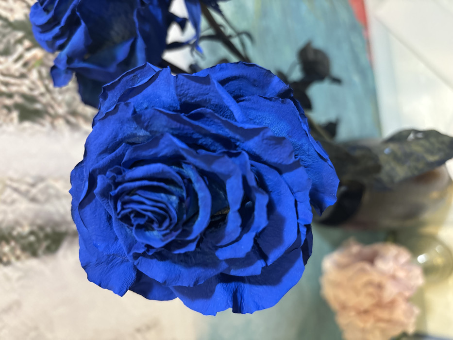 - "The image displays a close-up of a vibrant blue rose, likely preserved, positioned centrally in an indoor environment in Chaikovsky, Russia" by FM-iZ7Ry2, licensed under CC BY 4.0