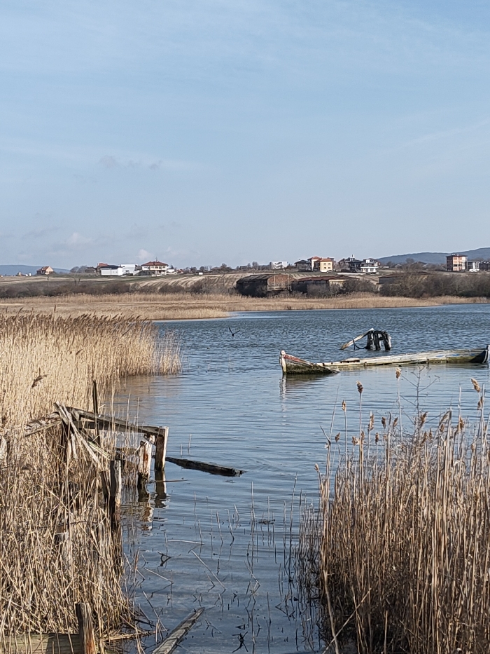 - "The image displays a scene near Burgas, Bulgaria, characterized by a calm body of water flanked by extensive reed beds, with a distant settlement under a partly cloudy sky" by FM-8Zy5w1, licensed under CC BY 4.0