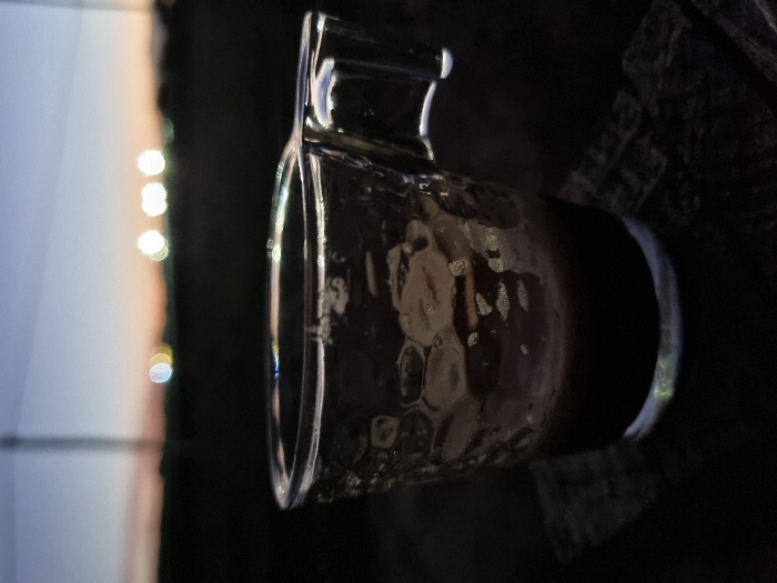 - "The image displays a clear glass mug containing a dark beverage, photographed at dusk or night in Moguer, Spain" by FM-PLHj72, licensed under CC BY 4.0