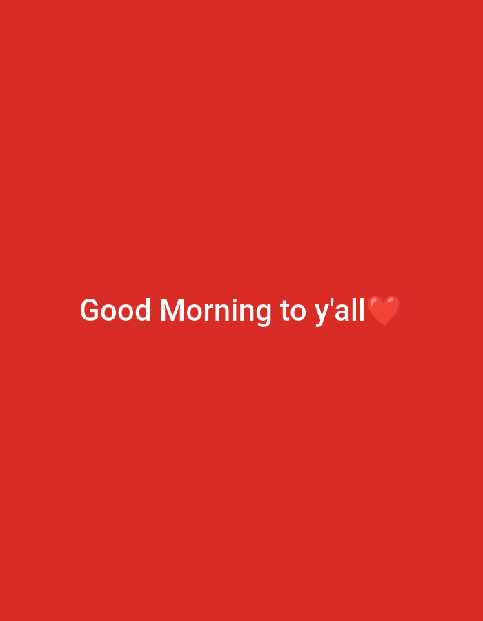 The image displays a digital graphic with a solid red background. Centered horizontally, white sans-serif text reads "Good Morning to y'all", followed immediately by a red heart emoji. There are no discernible people, subjects, objects (other than the text and emoji), actions, interactions, or specific environmental features. The location is the City of Unknown, Unknown.