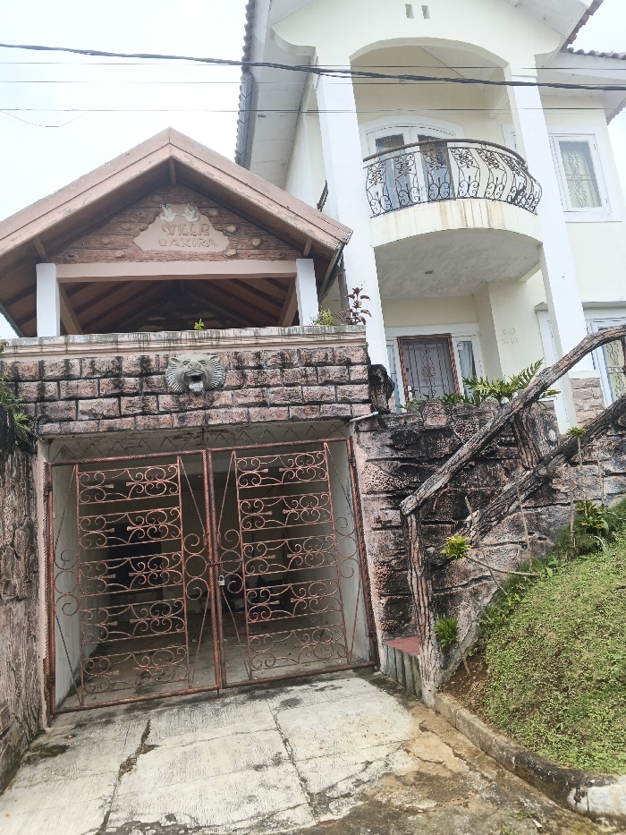 An upward-angled view captures the front facade of "VILLA DAKIRA," a multi-story, light-colored residence in Pô Kô, Vietnam