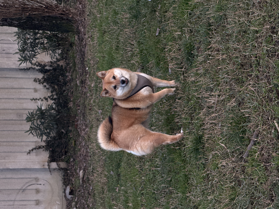 - "A Shiba Inu dog with a harness lies on its back in the grass" by FM-iCfSu2, licensed under CC BY 4.0