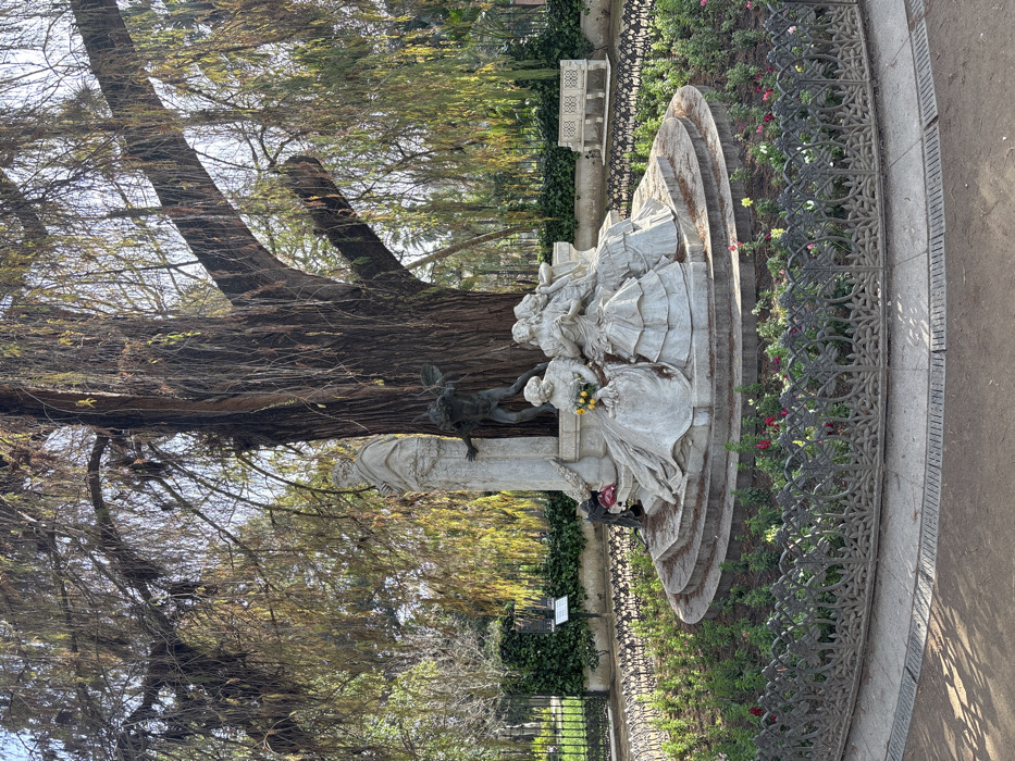This image depicts the Monument to Gustavo Adolfo Bécquer, located in the María Luisa Park in Seville, Spain