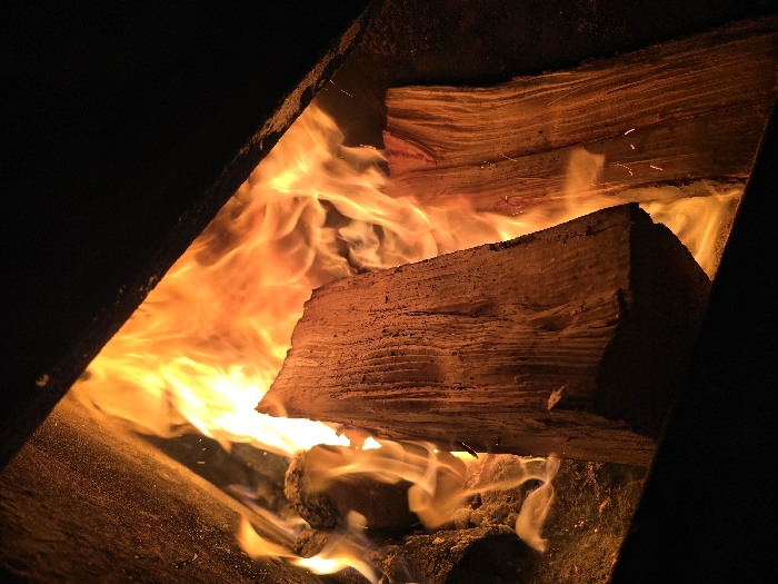 - "This image depicts a close-up, angled view of an active fire contained within a dark, rough-textured enclosure, located in Panichishte, Bulgaria" by FM-CuykM2, licensed under CC BY 4.0