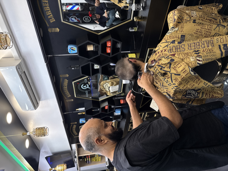 - "An interior view captures a haircut in progress at a modern barbershop, likely located in Strasbourg, France, as indicated by the "ALSACE C°" branding visible on a mirror" by FM-UOLoi1, licensed under CC BY 4.0