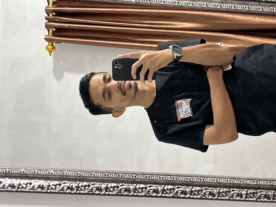 A male individual is depicted in a mirror selfie taken indoors in Alueduamuka S, Indonesia