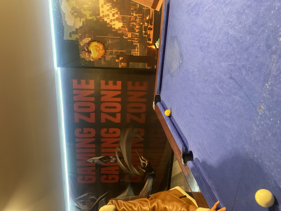 This image depicts an indoor gaming and entertainment space located in Fez, Morocco