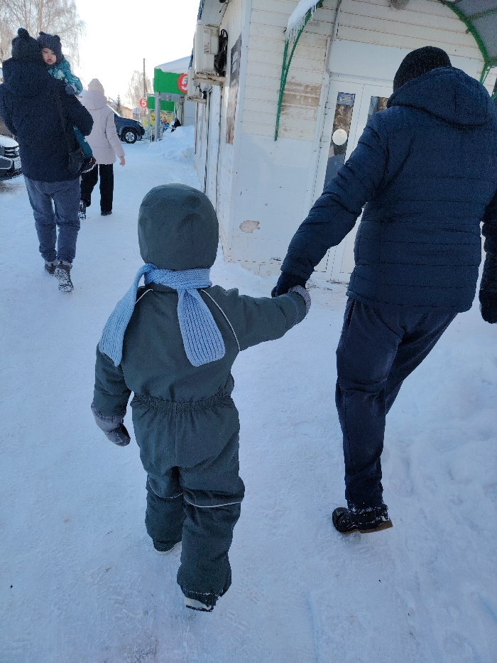- "The scene depicts a group of individuals walking on a snow-covered path next to a white commercial building in Elovo, Russia, during daylight hours" by FM-9xtHL2, licensed under CC BY 4.0