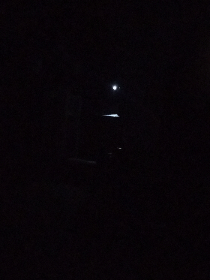 The image displays an extremely low-light environment, consistent with nighttime