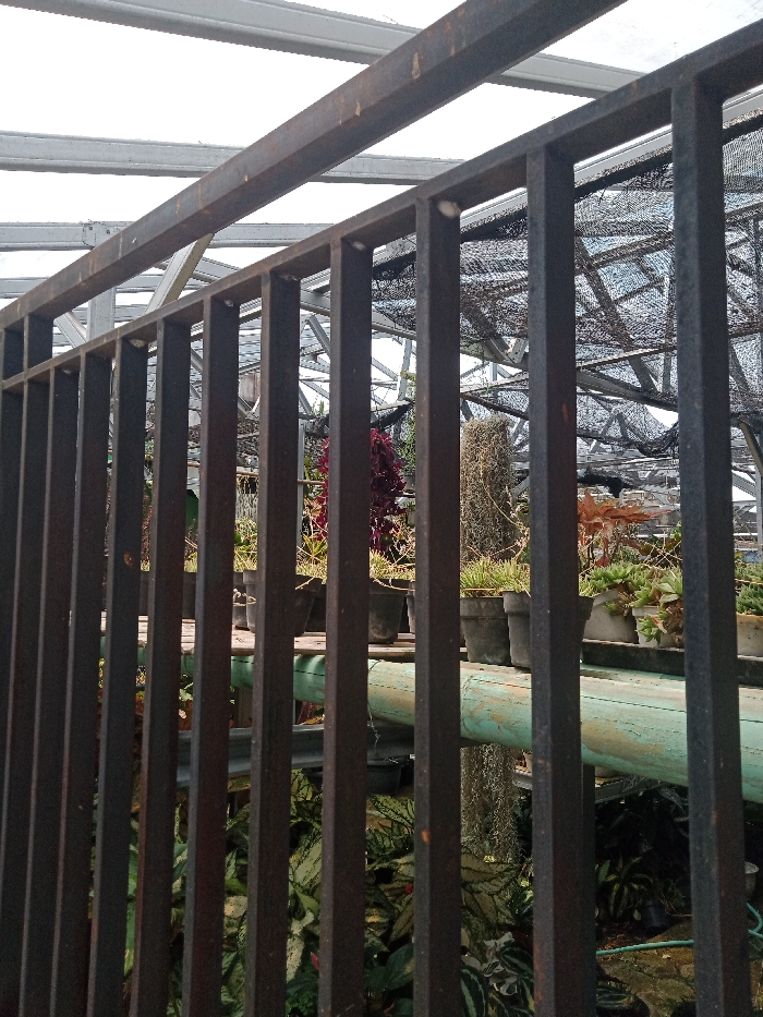 - "The image depicts a plant nursery in Kawungluwuk, Indonesia, viewed through a dark brown, vertically barred metal fence" by FM-ZuiT83, licensed under CC BY 4.0