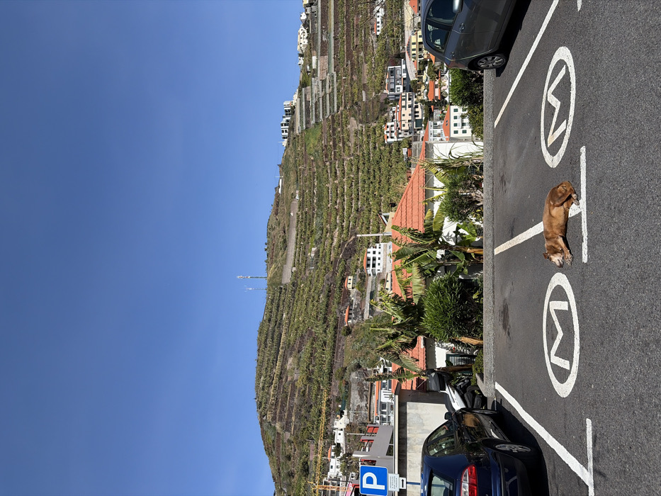 - "The scene depicts an outdoor parking area in Câmara de Lobos, Portugal, under a clear blue sky" by FM-R7RZz2, licensed under CC BY 4.0