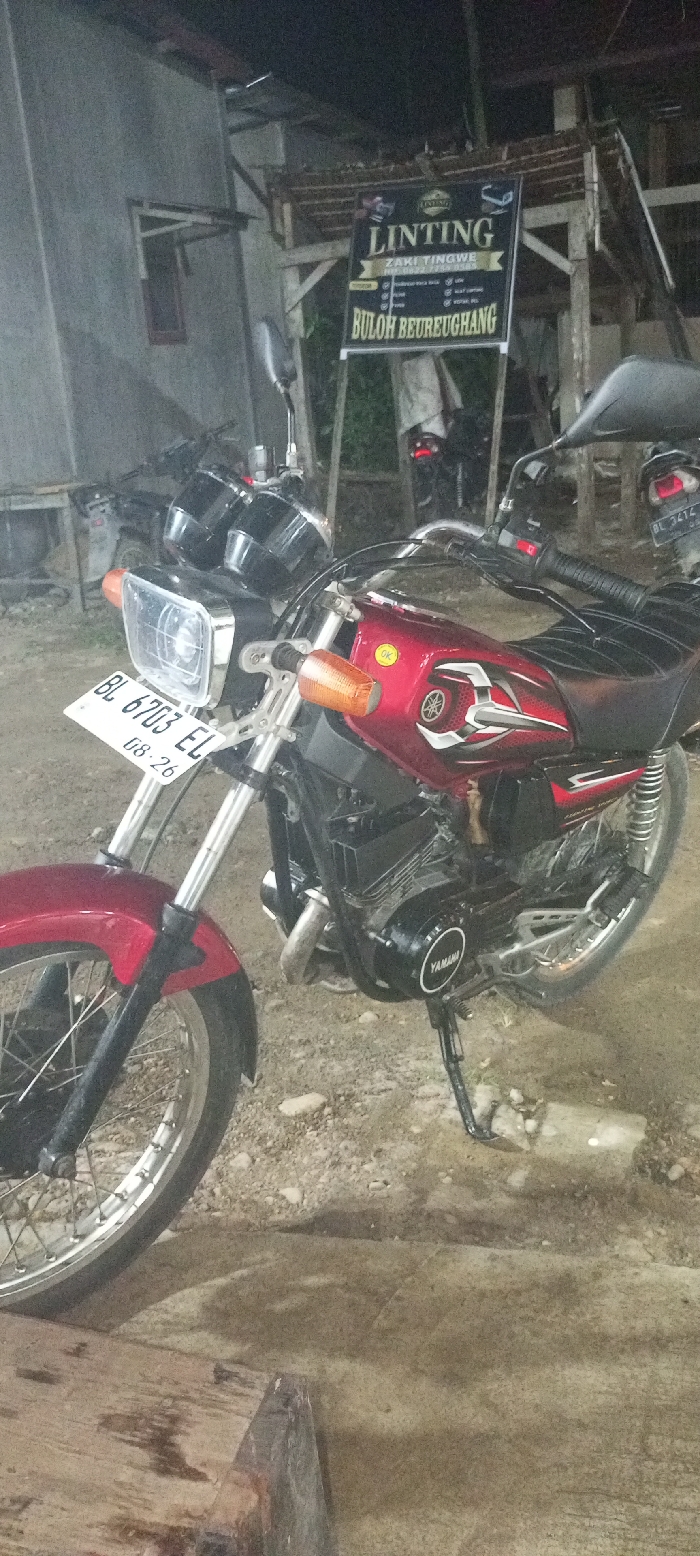 - "The image depicts a nighttime scene in Mns Alue, Indonesia, focusing on a parked red Yamaha motorcycle on an unpaved surface" by FM-0GHPl2, licensed under CC BY 4.0