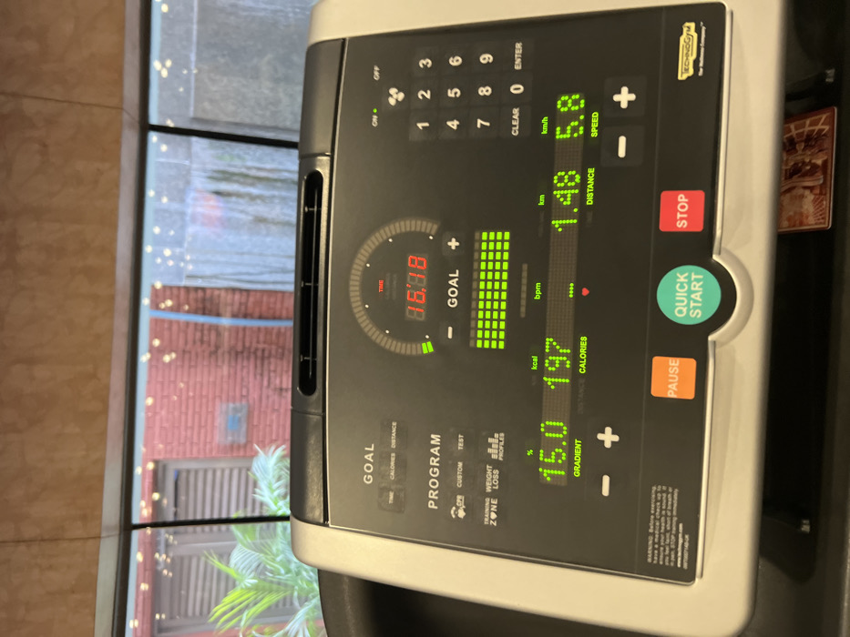 - "The image presents a close-up, eye-level view of an active Technogym treadmill console, positioned indoors in Noida, India" by FM-RsxEw2, licensed under CC BY 4.0