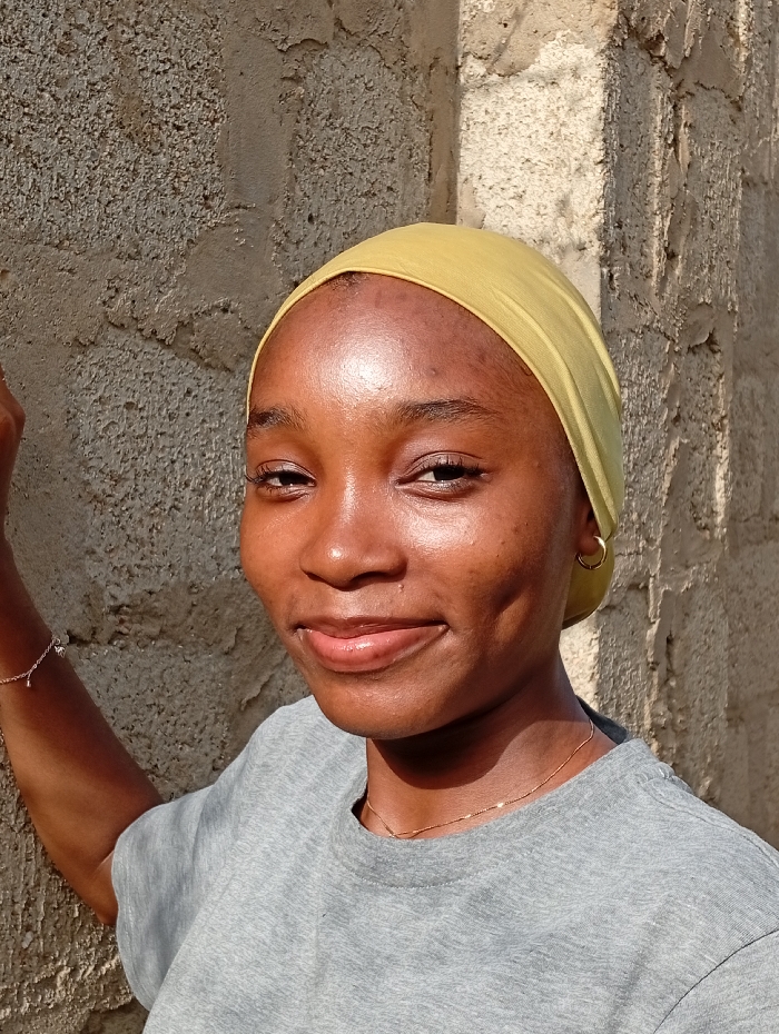 A close-up, chest-up portrait of a female individual in Dabawa, Nigeria, is depicted