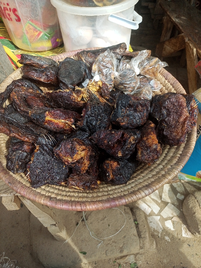 - "The image displays a large, round, woven basket filled with numerous pieces of dark brown to black smoked or dried fish, varying in size and shape" by FM-OHoyj2, licensed under CC BY 4.0