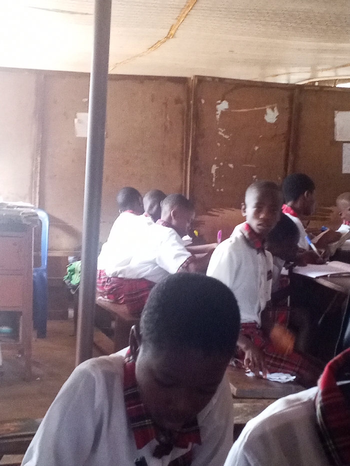 A medium-shot photograph depicts a crowded classroom in Unknown, Unknown, populated by approximately ten school-aged individuals