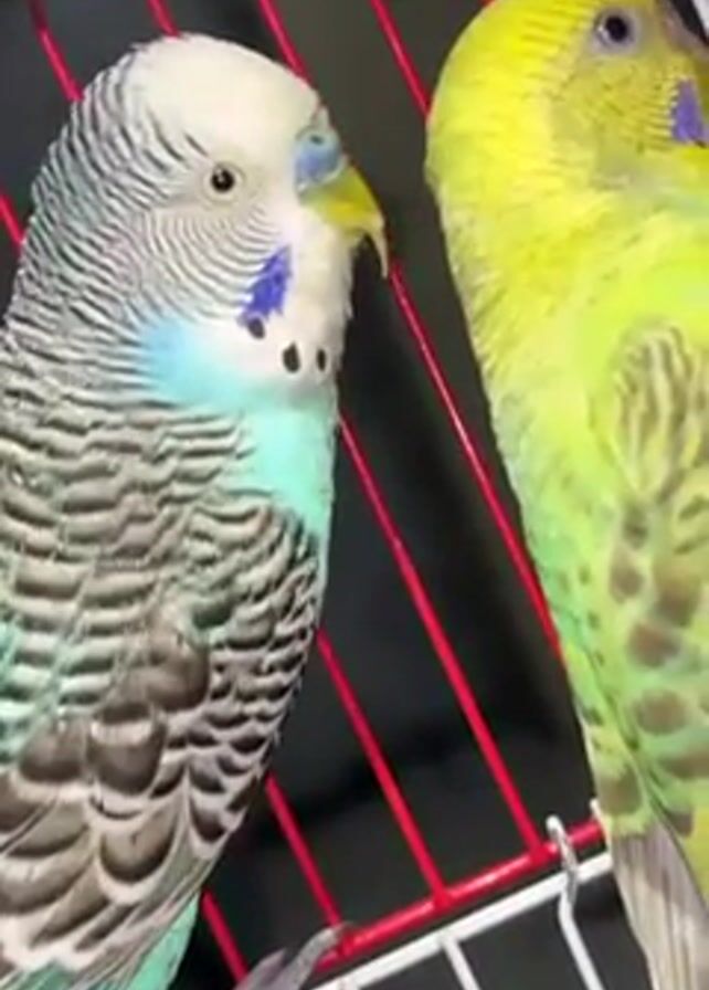 - "Two parakeets are in a red and white cage" by FM-kXqx32, licensed under CC BY 4.0