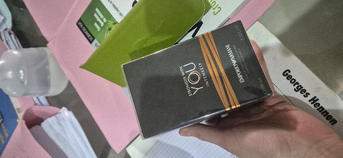 - "A human hand, with visible fingers and palm, is centered in the lower left, holding a new, cellophane-wrapped black and gold box of "STRONGER WITH YOU INTENSELY" by Emporio Armani" by FM-DaNa73, licensed under CC BY 4.0