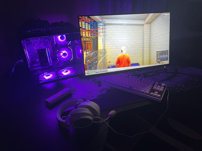 - "This image captures a dimly lit computer gaming setup on a desk in the city of Engels, Russia, bathed in purple ambient light" by FM-JinBB3, licensed under CC BY 4.0
